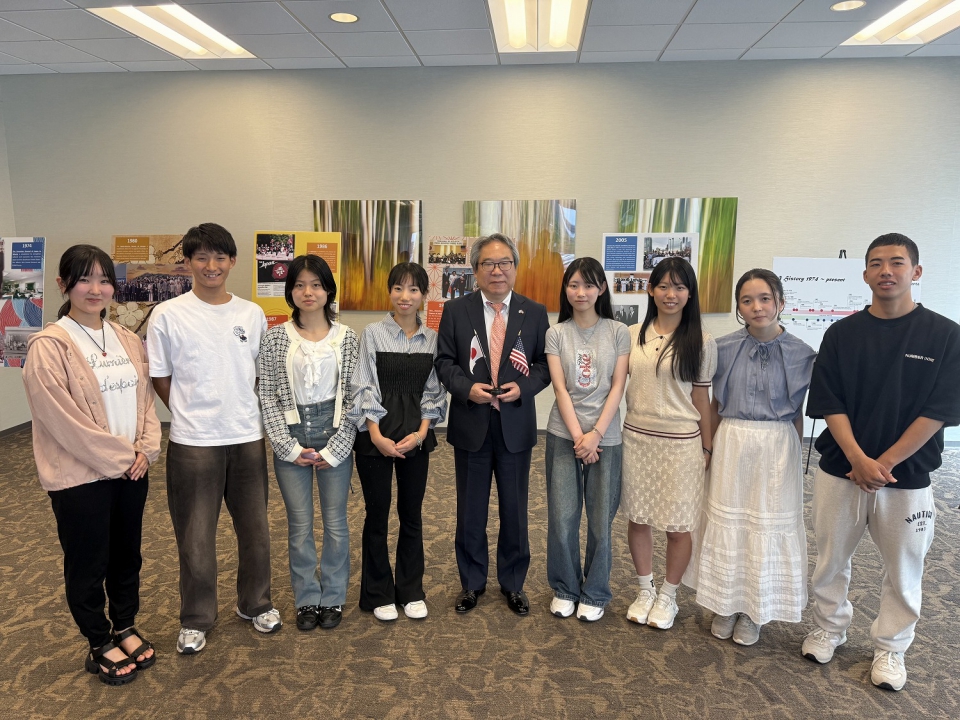 今回の派遣事業を通じて、団員たちはアトランタの家庭や学校、地域社会の中に身を置くことで、異文化に触れ、自分の言葉で伝え、相手を理解するという貴重な経験を積むことができました。ホストファミリーとの日常生活では、家庭の温かさに触れながら英語でのコミュニケーションに挑戦し、友情や信頼関係を築くことができました。学校では日本との違いを実感しつつ、授業参加や福岡紹介の活動を通じて、自国の文化を発信する大切さを学びました。さらに、市役所や総領事館、企業訪問を通じて社会の仕組みや国際的な仕事の現場に触れることで、自らの将来や進路を考えるきっかけにもなったようです。
