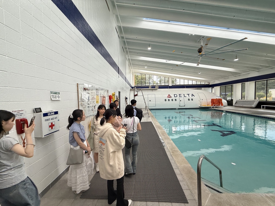 緊急着陸訓練用プールを見学(デルタ航空本社内)