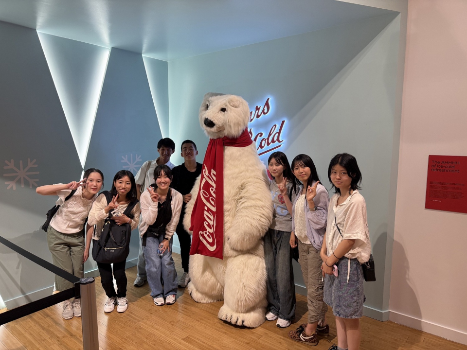 その後、アトランタ市に本社を置くコカ・コーラの博物館「World of Coca Cola」を訪問しました。ここは、世界的ブランドの歴史や製造過程を体験型で学び、実際にコカ・コーラの世界中の味を試飲できる博物館で、展示に生徒たちは興味津々でした。隣にあるオリンピック公園では、1996年アトランタ五輪のモニュメントを見学し、スポーツと都市の歴史のつながりを感じました。また、ジョージア水族館ではジンベエザメやペンギンなど多彩な海洋生物を観察し、展示やショーを通じて生態系や環境保護の重要性を学びました。