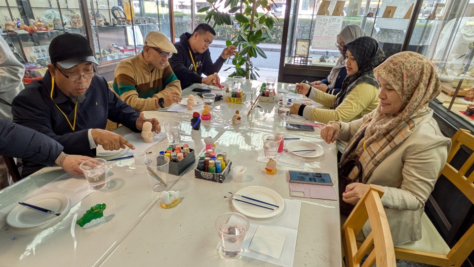 博多人形会館松月堂で、博多人形の絵付け体験をしました。
