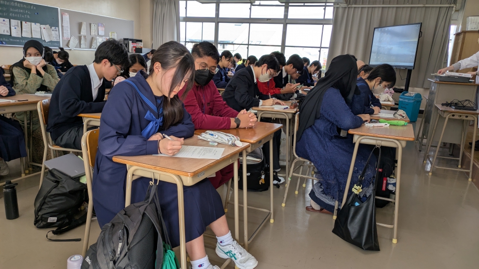 週末を各ホストファミリーと過ごし、活動最終日は福岡県立香住丘高校で体験入学と日本文化体験を行いました。